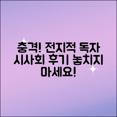 최근 열린 전지적 독자 시점 시사회는 많은 이들의 입소문을 타고 있으며, 이번 기회를 통해 영화에 대한 깊은 통찰을 얻을 수 있는 절호의 찬스였습니다. 특히, 연출가 김병우 감독의 생생한 영화 이야기와 스페셜 GV 이벤트는 관객들에게 잊지 못할 경험을 선사했습니다. 이 시사회에서 느낀 감동은 앞으로의 개봉작에 대한 기대감을 더욱 증대시켰습니다.