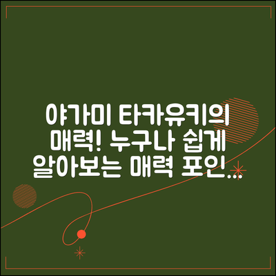 야가미 타카유키는 독창적인 캐릭터로 많은 사랑을 받는 주인공입니다. 그의 매력을 이해하고 여러 작품을 즐겨보세요!